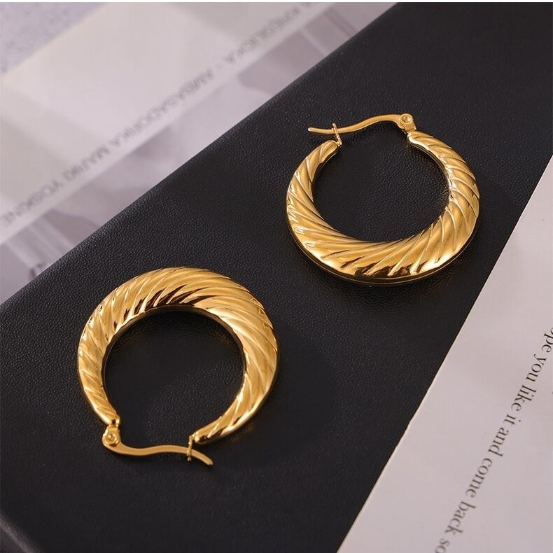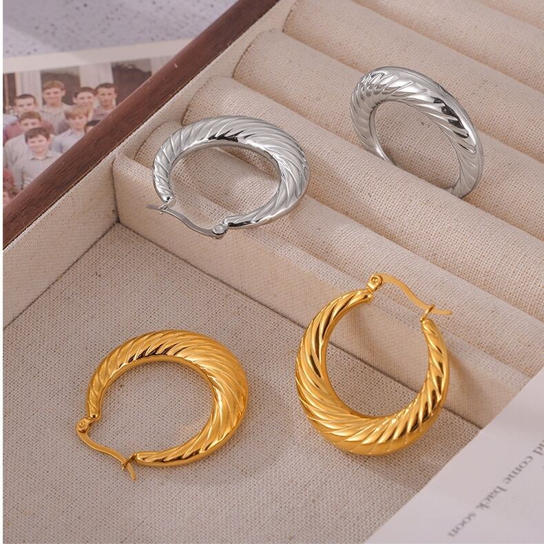 フープデザインの金属アレルギーの方でも安心してお使いいただける18kコーティングのステンレスピアス