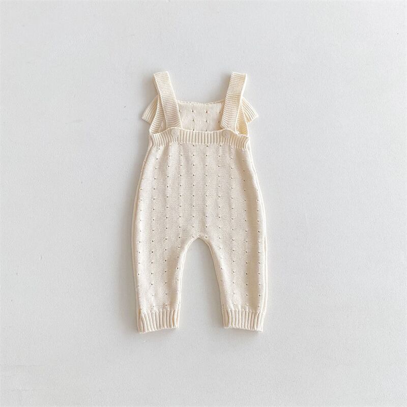 ニットサロペットは、赤ちゃんのやわらかな肌と可愛らしさを引き立てる一枚です